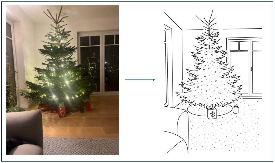 Beispiel 3: Ein Familienfoto, zum Beispiel vom Urlaub oder von Weihnachten, wird zur besonderen Malvorlage, die ihr gemeinsam ausmalen und aufhängen könnt.