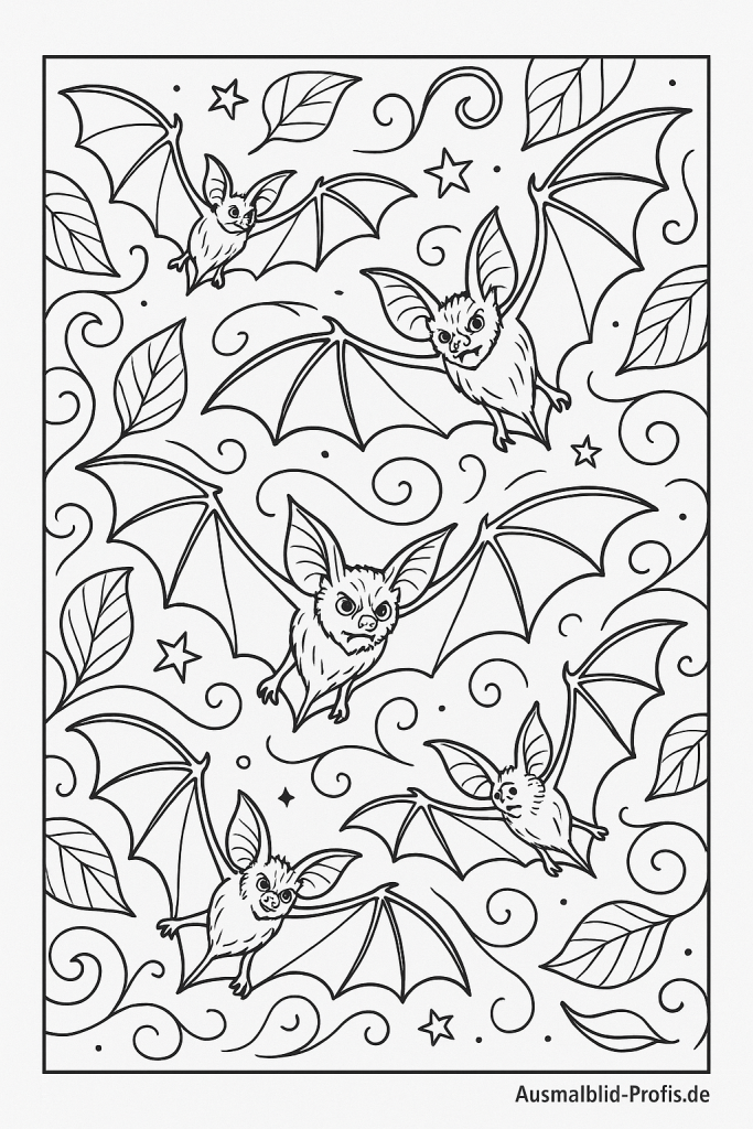 Eine böse dreinschauende Fledermaus mit großen Flügeln flattert durch die Nacht und wartet darauf, von euch bunt ausgemalt zu werden. Mit euren Lieblingsfarben könnt ihr ihre Augen, die Flügel, den Himmel, den Mond und ein paar Sterne geheimnisvoll gestalten. Perfekt zum Ausmalen für alle Kinder, die Halloween mögen und Spaß an leicht gruseligen Nachtbildern haben.