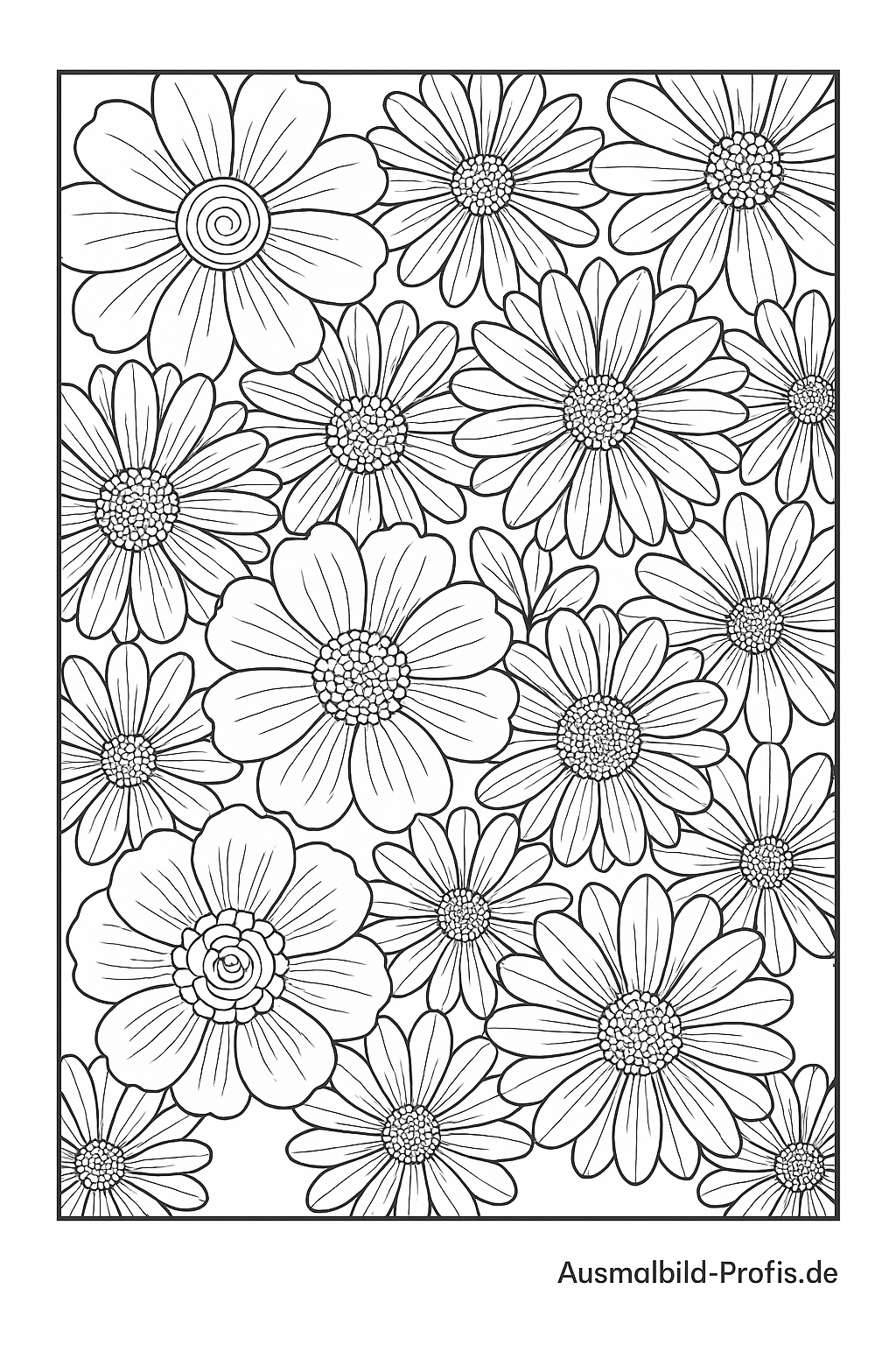 Tauche ein in unsere bunte Welt der Ausmalbilder für Blumen! Hier findest du zarte, verspielte und prachtvolle Blumen-Motive – von einfachen Blüten über duftende Blumensträuße bis hin zu romantischen Blumenwiesen. Mit deinen Lieblingsfarben kannst du jede Blume ganz individuell gestalten und deiner Kreativität freien Lauf lassen. Einfach auswählen, ausdrucken und losmalen – Farbspaß und Gute-Laune-Garantie inklusive!