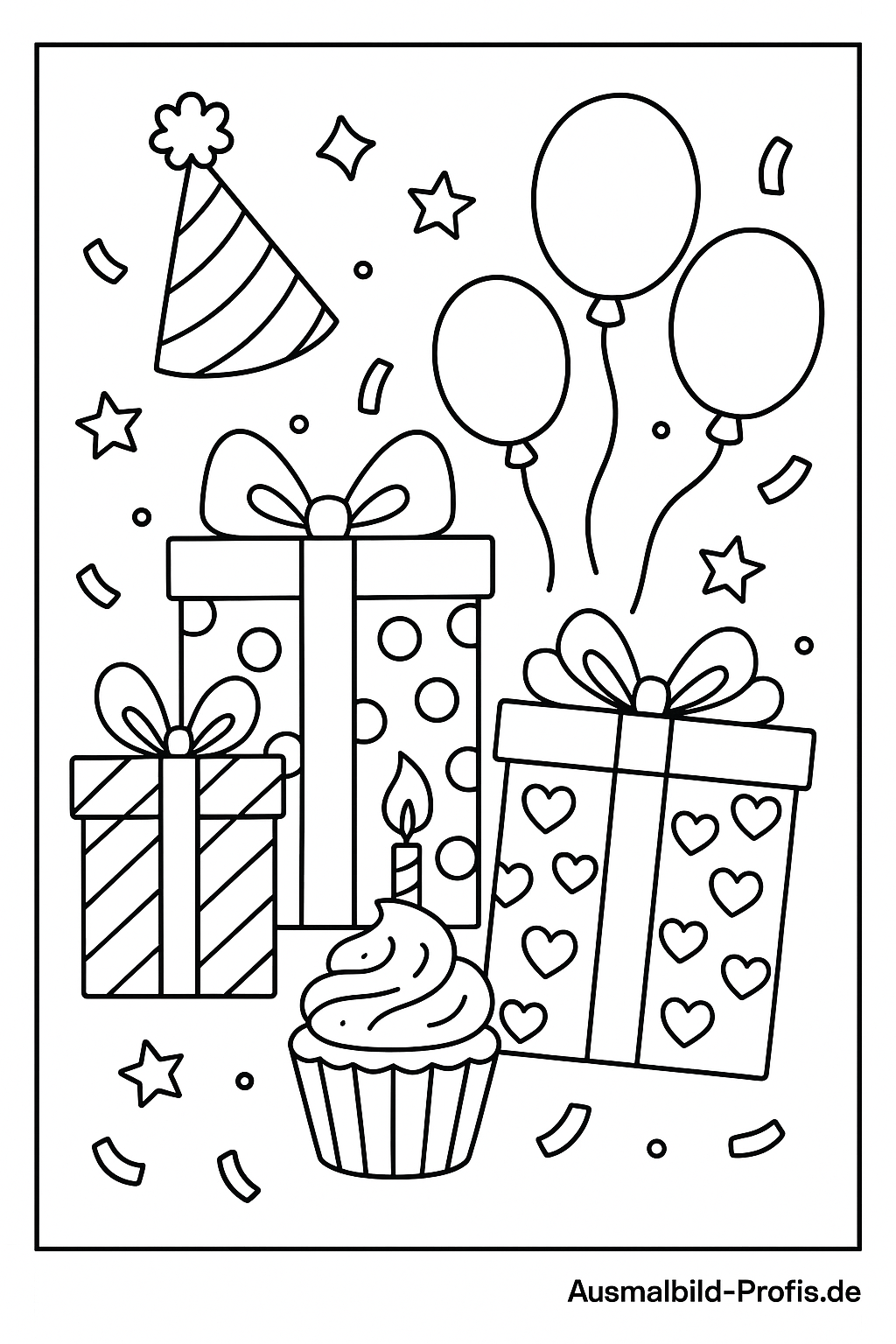 Tauche ein in unsere fröhliche Welt der Ausmalbilder rund um Geburtstag und Party! Hier findest du lustige, bunte und festliche Motive – von Geburtstagskuchen mit Kerzen über Luftballons und Geschenke bis hin zu fröhlichen Partyszenen. Mit deinen Lieblingsfarben kannst du jede Party ganz individuell gestalten und deiner Fantasie freien Lauf lassen. Einfach auswählen, ausdrucken und losmalen – Geburtstagsstimmung und Konfettiregen sind garantiert!