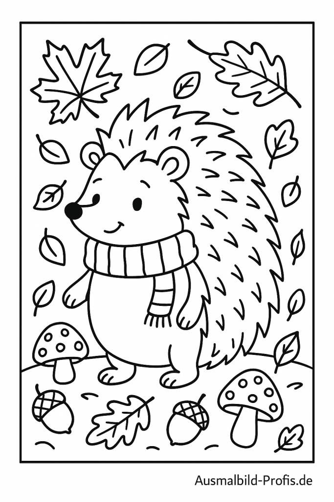 Ein niedlicher Igel läuft zwischen vielen Blättern hindurch und freut sich über den bunten Herbst. Mit euren Lieblingsfarben könnt ihr seine Stacheln, die Blätter und den Waldboden fröhlich gestalten. Perfekt zum Ausmalen für alle Kinder, die Tiere, den Wald und die Herbstzeit lieben.