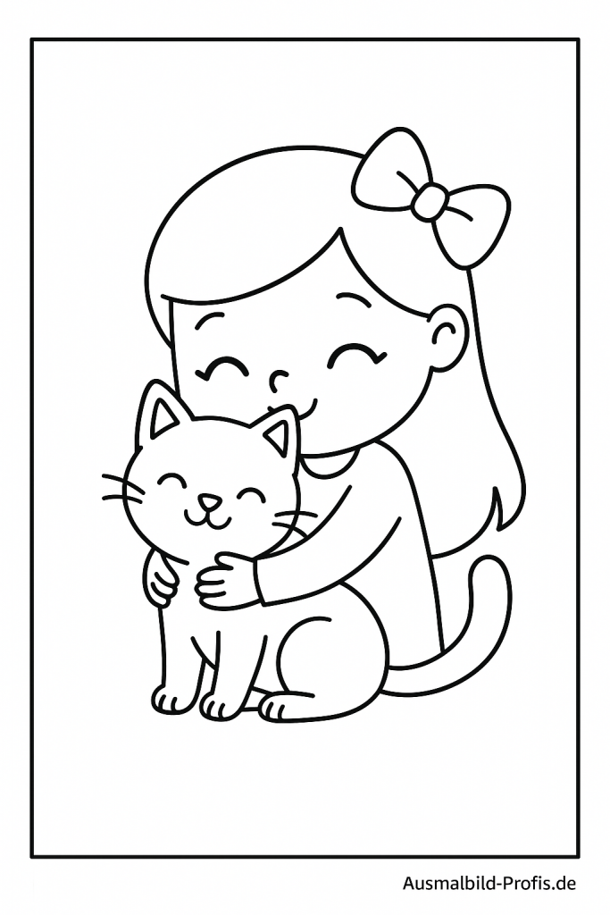 Ein fröhliches Mädchen spielt mit ihrer Katze und die beiden genießen die gemeinsame Zeit. Mit euren Lieblingsfarben könnt ihr das Haar des Mädchens, das Fell der Katze und die Umgebung – zum Beispiel ein Zimmer oder eine Wiese – bunt gestalten. Perfekt zum Ausmalen für alle Kinder, die Katzen, Freundschaft und liebevolle Geschichten zwischen Mensch und Tier lieben.