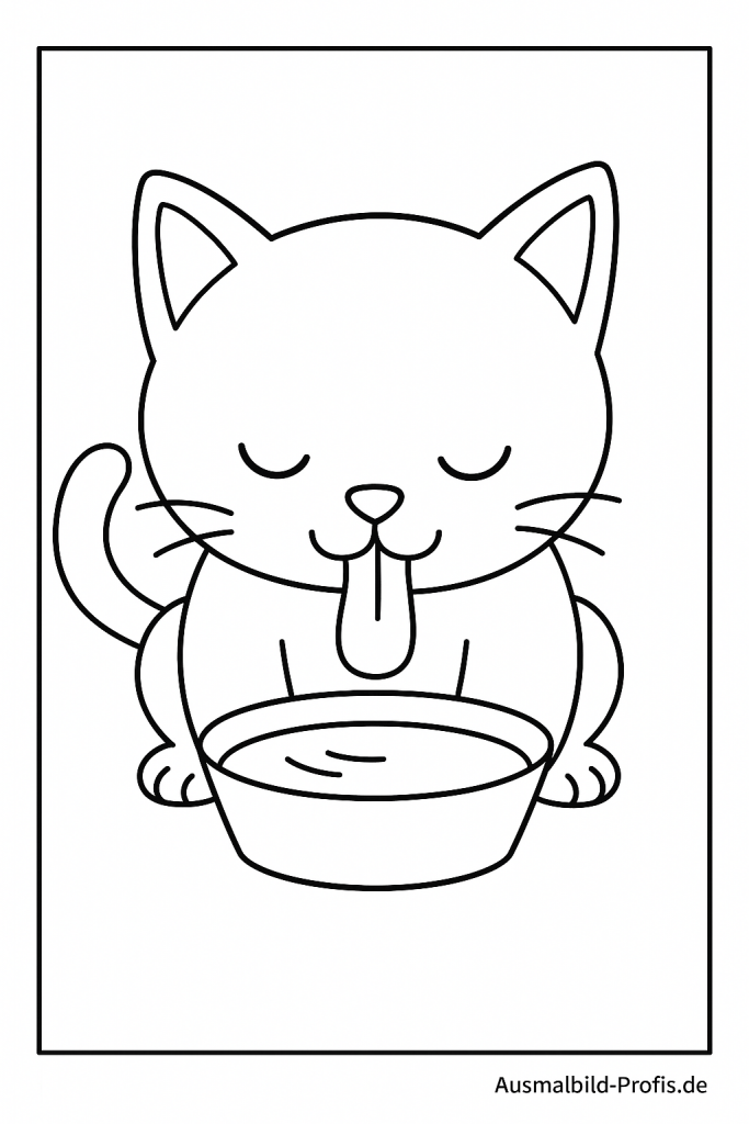 Eine hungrige Katze sitzt vor einer Schale und trinkt genüsslich ihre Milch. Mit euren Lieblingsfarben könnt ihr ihr weiches Fell, die Schale und die Umgebung – zum Beispiel eine Küche oder einen gemütlichen Platz – bunt gestalten. Perfekt zum Ausmalen für alle Kinder, die Katzen, Haustiere und gemütliche Wohlfühlmomente lieben.
