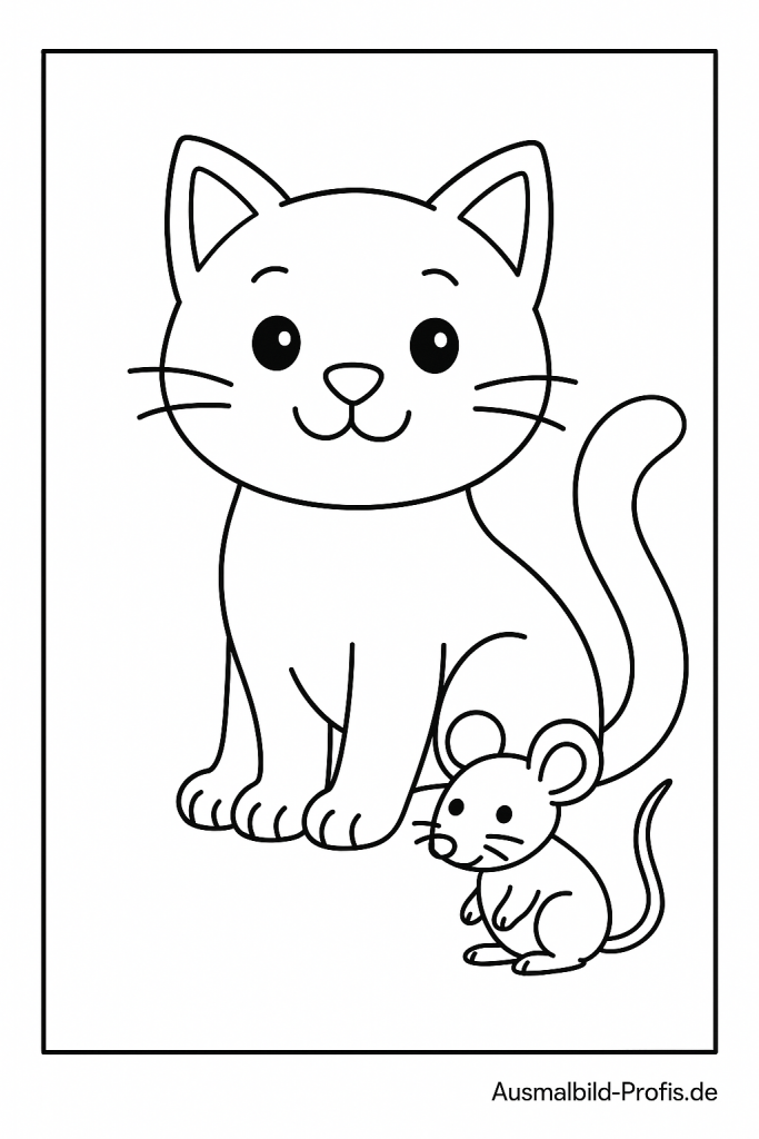 Eine neugierige Katze und eine kleine Maus begegnen sich und schauen sich gespannt an. Mit euren Lieblingsfarben könnt ihr das Fell der Katze, die Maus und die Umgebung – vielleicht ein Haus, eine Wiese oder ein kleines Versteck – bunt gestalten. Perfekt zum Ausmalen für alle Kinder, die Tiere, spannende Begegnungen und lustige Geschichten mit Katze und Maus lieben.