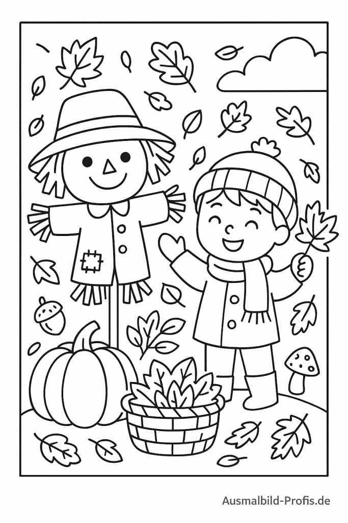 Ein fröhliches Kind spielt mit vielen fallenden Blättern und wartet darauf, von euch bunt ausgemalt zu werden. Mit euren Lieblingsfarben könnt ihr die Blätter in leuchtendem Rot, Gelb, Orange und Grün gestalten und dem Kind eine bunte Herbstkleidung geben. Perfekt zum Ausmalen für alle Kinder, die den Herbst lieben und gerne fröhliche Naturbilder malen.