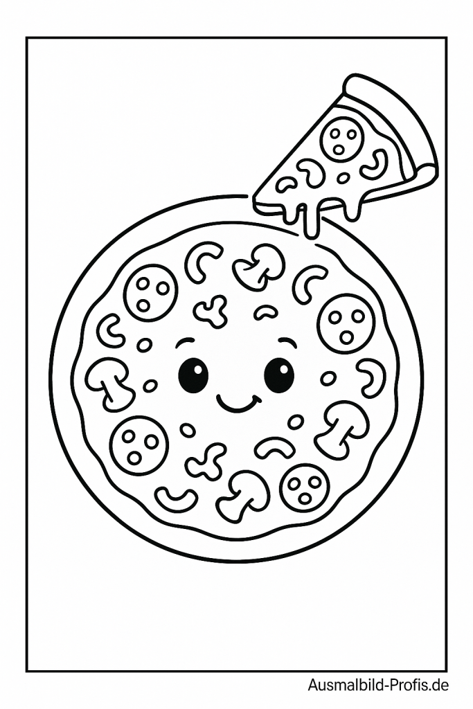Ein leckeres Stück Pizza mit Käse, Tomaten und vielen bunten Zutaten wartet nur darauf, von dir gestaltet zu werden. Mit kräftigen Farben kannst du den Belag ganz nach deinem Geschmack ausmalen – ob mit viel Gemüse, Salami oder extra Käse. Perfekt zum Ausmalen für alle Kinder, die Pizza lieben und gerne kreativ werden.
