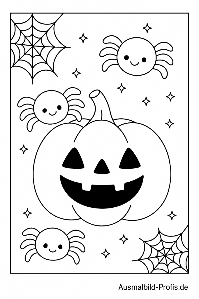 Mehrere kleine Spinnen krabbeln über einen großen Kürbis und warten darauf, von euch bunt ausgemalt zu werden. Mit euren Lieblingsfarben könnt ihr den Kürbis, die Spinnennetze und die Spinnen selbst ganz kreativ gestalten – gruselig, lustig oder beides zusammen. Perfekt zum Ausmalen für alle Kinder, die Halloween mögen und Spaß an ein bisschen kribbeligem Grusel haben.